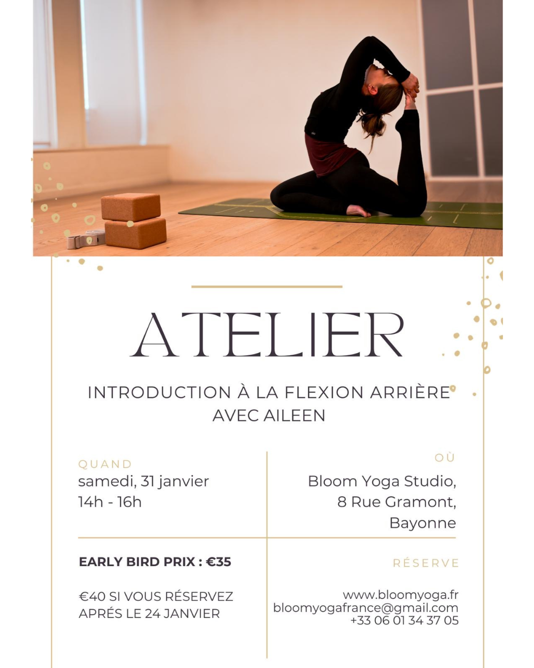 Rejoignez Aileen chez Bloom Yoga Studio à Bayonne pour un cours à la flexion arrière !