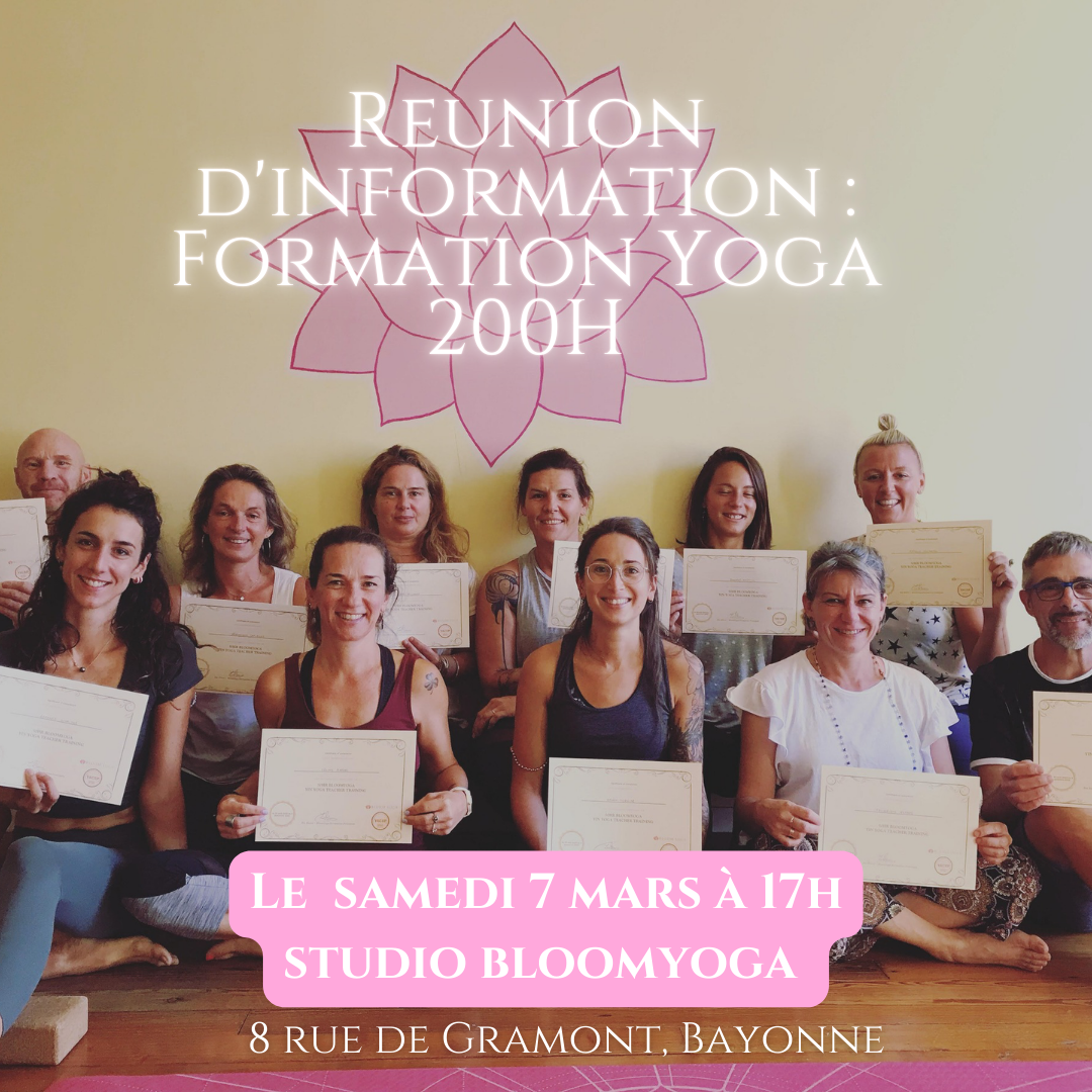 BloomYoga anime une Réunion d’information pour ceux qui sont intéressé par La Formation de BloomYoga (200 heures) à Bayonne.